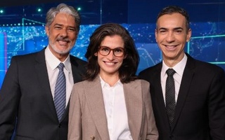 bancada, Renata Vasconcellos, receberam no estúdio César Tralli, que assume